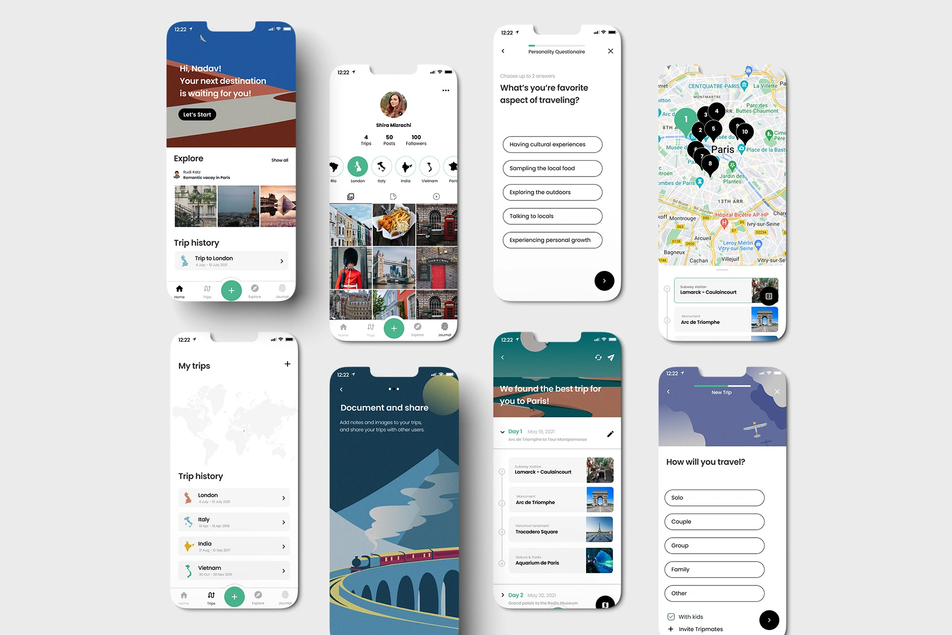 בפרויקט יצרתי חוויית מותג שלמה – משלב האפיון והמיתוג ועד עיצוב הממשקים והאיורים הדיגיטליים. המטרה הייתה לבנות חוויה שמרגישה כמו תחילת המסע עצמו: שילוב של טכנולוגיה, דמיון והרפתקה. רציתי שהמשתמש ירגיש תחושת מסתורין, סקרנות וקסם – כאילו חוויית הטיול שלו התחילה כבר מרגע הכניסה לאפליקציה, באמצעות שימוש בצבעוניות לא צפויה ובאוסף איורים שמייצגים דרכים ומסעות שונים מכל רחבי העולם.